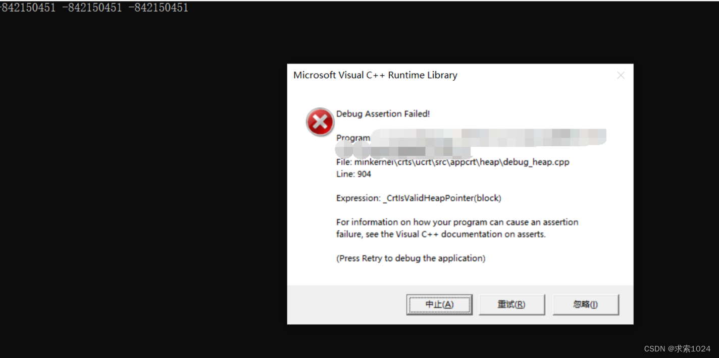 - 如果参数ptr指向的空间不是动态开辟的,那free函数的行为是未定义的,报错
