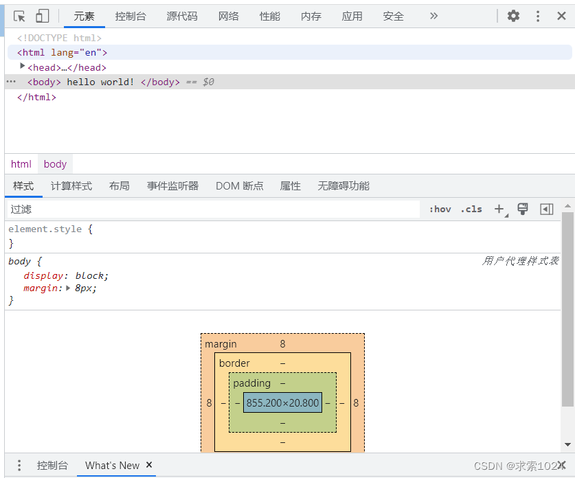 - 元素一栏可以让我们看到每行代码对应在页面中的位置