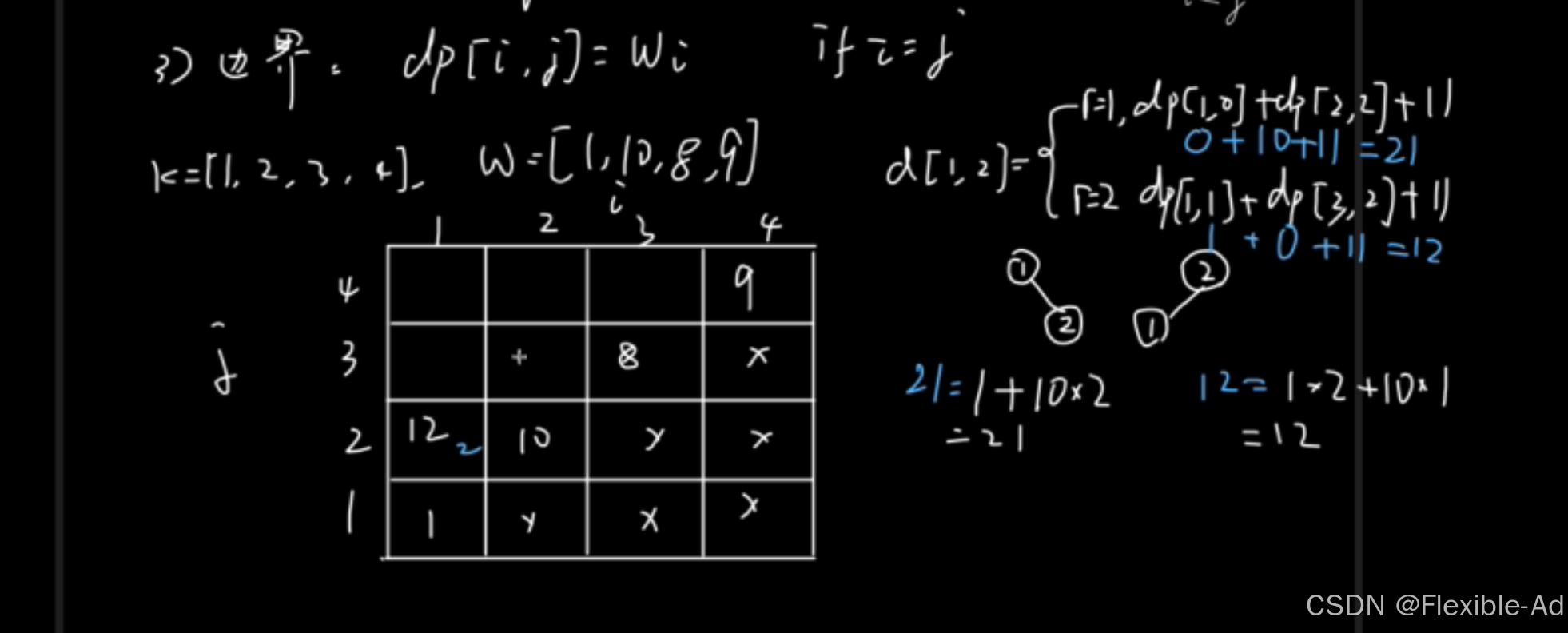 以下为运用动态规划思想求解的相关思路: (绿色 标记部分为我们dp【1,2】最终需要的解)