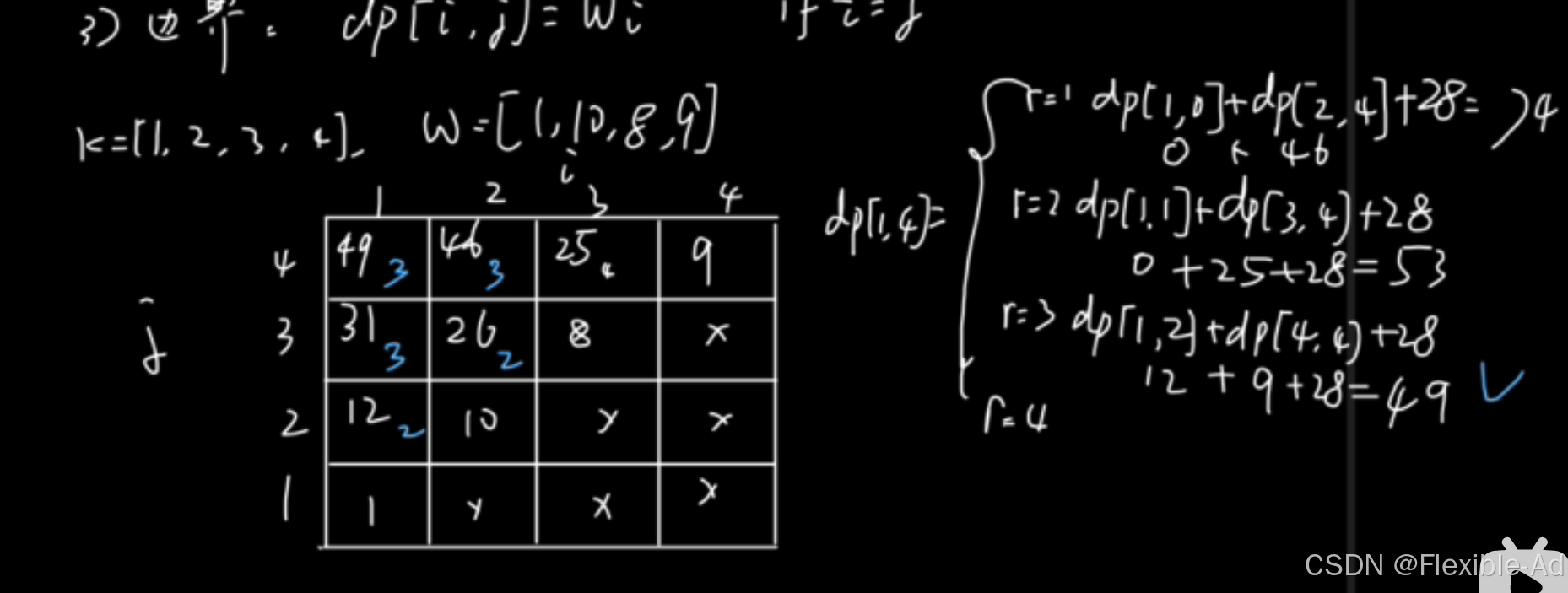 sumw=sum(w[i:j+1])#规则是包含了i到j的总和