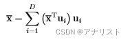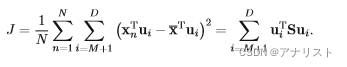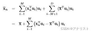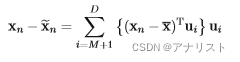 我们目标是利用个变量近似表示这个数据点,方式是通过投影到更低维的子空间。M维线性子空间不失一般性可以用前M个基向量表示,具体而言,每个数据点