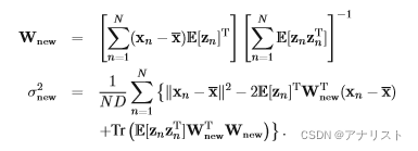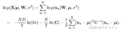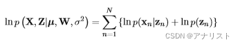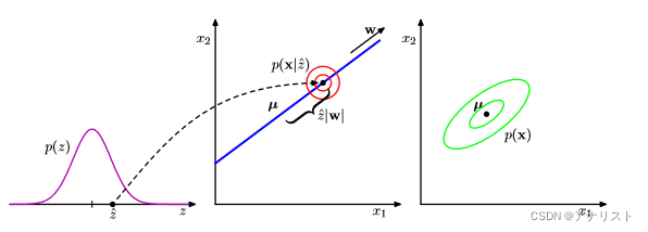 如前文所述,PPCA可用连续隐空间z的边际分布来表达,其中每个数据点对应了一个