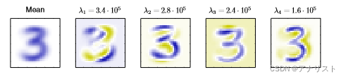 我们可以增量的方式额外定义更多的主成分,只需要选择每个新的方向为最大化投影方差的方向,并满足与已有的方向正交即可。现在考虑M维投影空间的通用情况,最优线性投影(方差最大化)被定义为M个特征向量,而协方差矩阵S对应了M个最大的特征值