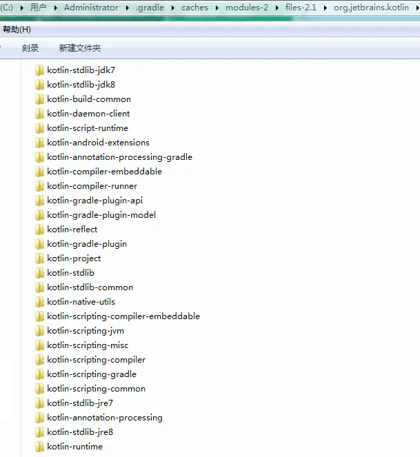 kotlin的所有jar下载的路径为:C:/Users/Administrator/.gradle/caches/modules-2/files-2.1/org.jetbrains.kotlin/