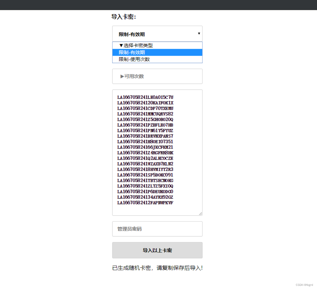 时长卡密,首次登录标记激活使用,开始计算时长,到期则不可登录。
