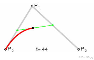 三个点P0、P1和P2时,构造其贝塞尔曲线: