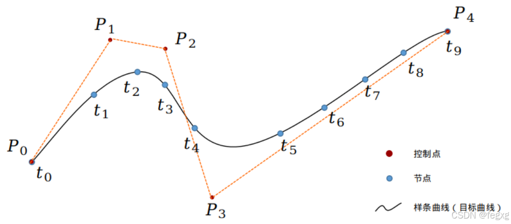 再根据B样条曲线公式计算出t时刻对应在B样条曲线的位置坐标。