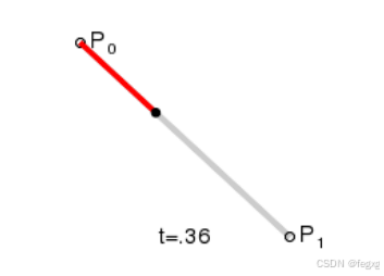 t在0到1之间变化时,实际上该曲线B(t)表示过P0和P1的线段。