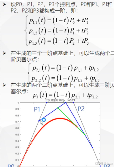 从P0P1上选一个点P0,1,P1P2上选一个点P1,2,由这两个点构成的曲线方程为: