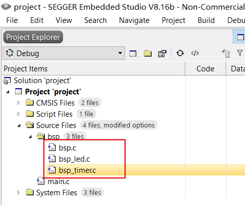 5、在Embedded Studio项目中,右键Source Files,新建文件夹bsp