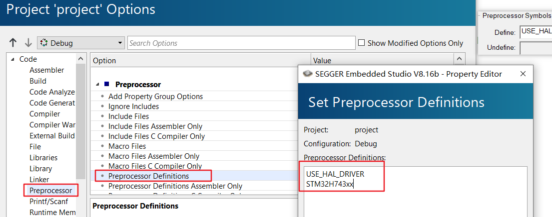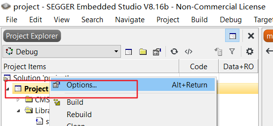 在工程下右键,选择options