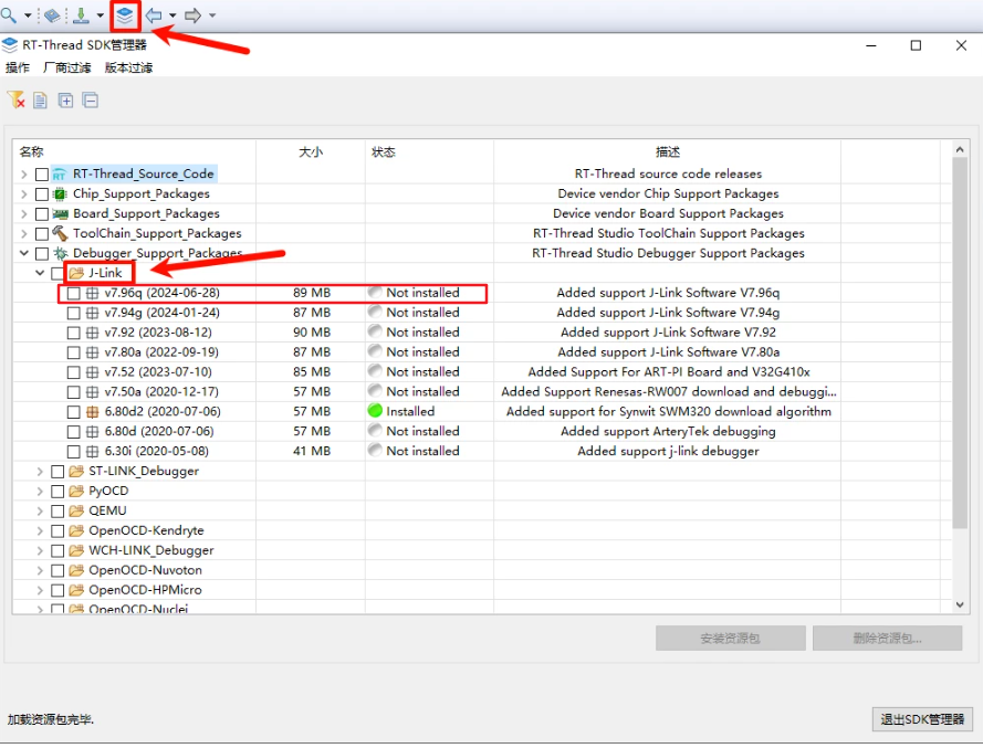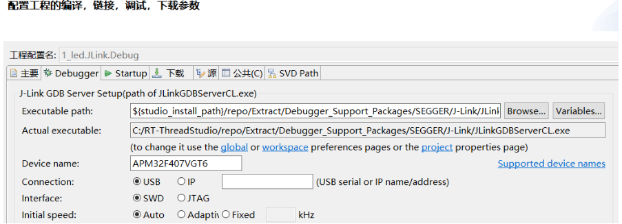 RT-ThreadStudio/repo/Extract/Debugger_Support_Packages/SEGGER/J-Link下并在rtthread studio中的调试地方设置