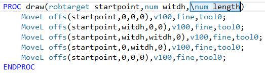 在定义例行程序时,可以带参数,参数包括固定参数和可选参数,在调用时,固定参数必须要写,可选参数有时按照可选参数执行,没有写时就忽略可选参数。