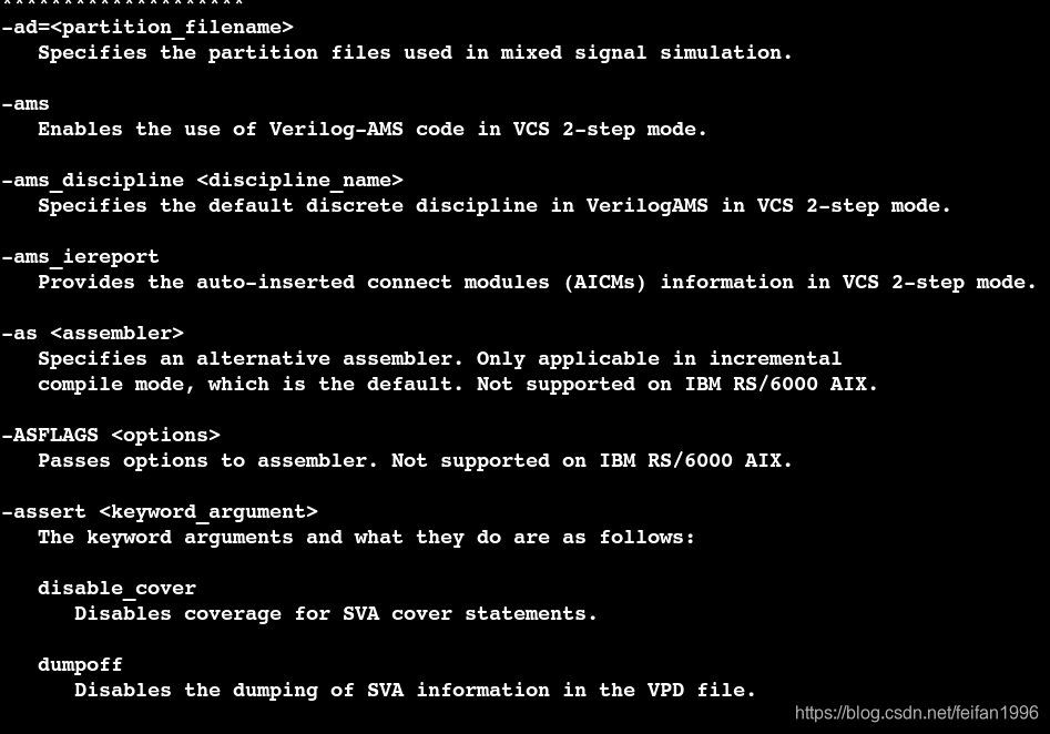 vcs -help:列出所有的编译选项,运行时间选项和环境变量