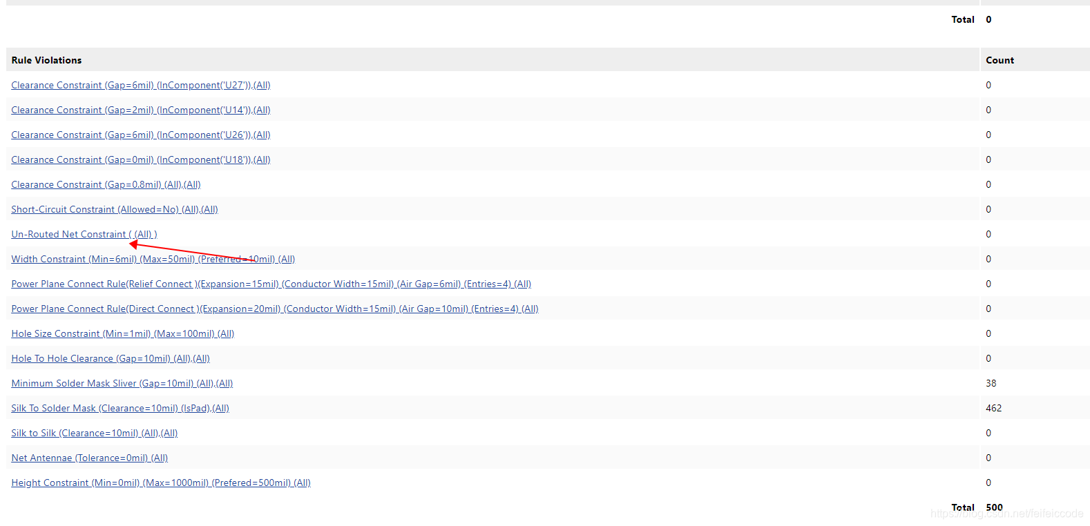 1》DRC发现未连接的线为0,但Report----板信息 中的布线信息却不为0;