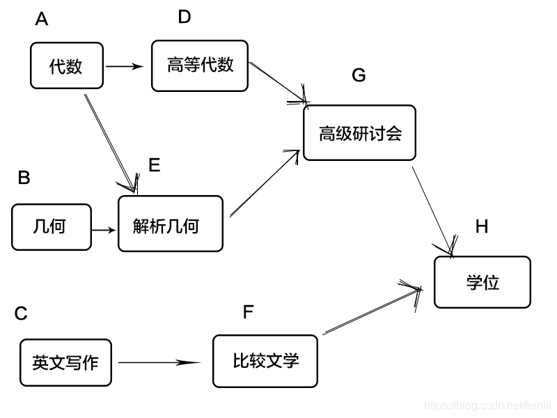 这个排序顺序也是我们前面提到的一种顺序。就是先修几何,然后修英文写作,最后获得学位,满足条件。