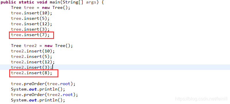 这两棵树是相等的,如果少一个节点,或者某一个节点的数据不一样,那么也会导致判断的时候返回false,即两棵树不相等。