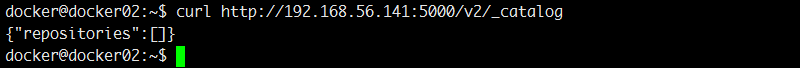 运行完成,我们就开启了一个docker私服,下面就是通过curl命令验证一下私服仓库最开始没有镜像的情况:
