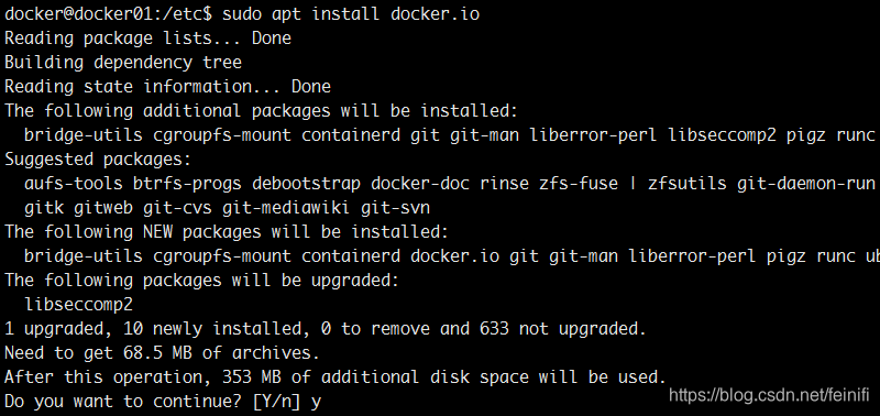 这次实验我采用的虚拟机是ubuntu1804,这样,我们在开始之前,需要安装docker,具体安装,我直接采用的是sudo apt install docker.io。