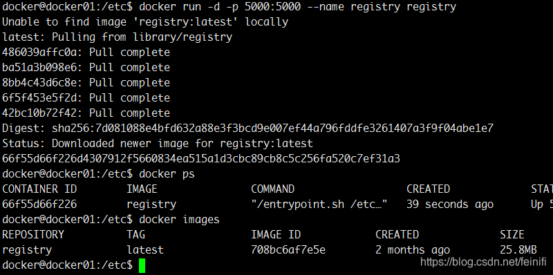开启docker私服,其实很简单,我们直接在docker01上运行registry镜像即可。