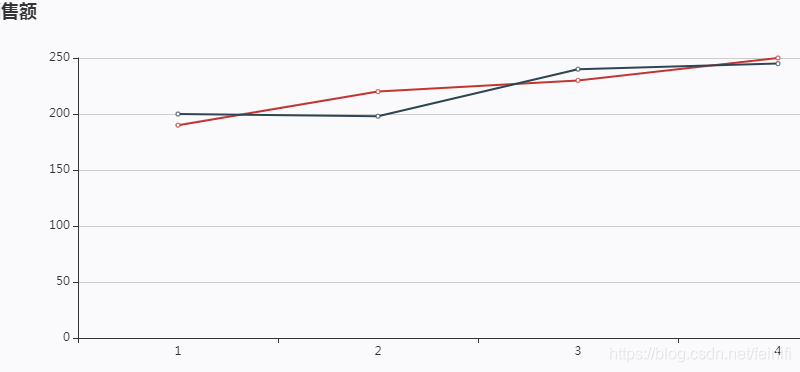 折线图的数据只有一组,看着很单调,其实他的数据series本来就是一个数组,可以传入多个数据对象,这样,我们看到的是多条线,可能他们会有交叉,如下图所示: