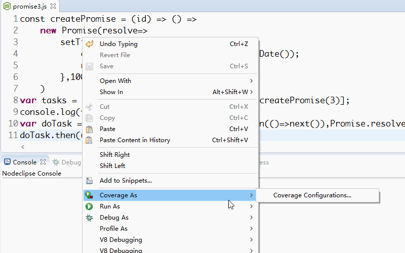 这里需要注意的是,我们的createPromise函数,不再返回的是Promise对象,而是一个函数,函数里面再返回Promise对象。运行我们的代码,截图如下: