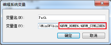 我们最后把这两个环境变量的值都追加到Path路径后面,这样,我们在命令行下就可以使用nvm命令了。