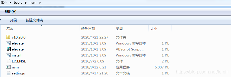 意思很明确root是nvm的安装目录,path是nodejs将来安装的目录,node_mirror是node下载的源,npm_mirror是npm依赖安装源。nvm目录中的文件内容如下所示: