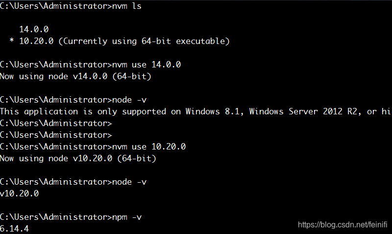 其中,v10.20.0目录是已经安装的node的一个版本。