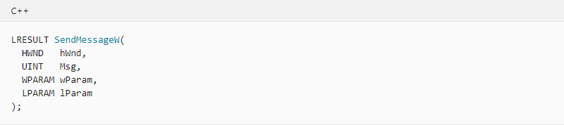 这里需要注意的是,SendMessageW()函数的参数,按照官方文档定义如下: