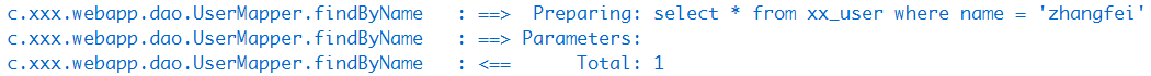 该配置最后一行是我们的dao接口包层级目录,按照各自真实的项目配置即可,这是一个可变项。sql日志打印如下截图所示: