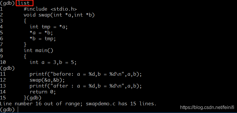 进入了gdb调试命令行,我们可以进行如下的相关操作: