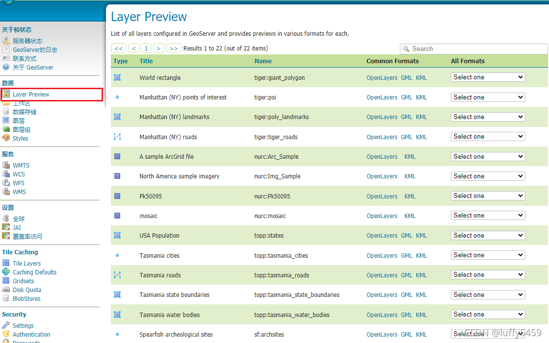 以上都是geoserver环境搭建与地图展示相关,下面介绍如何发布一个新的地图图层。
