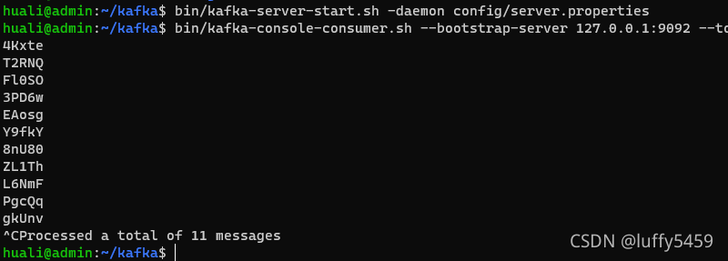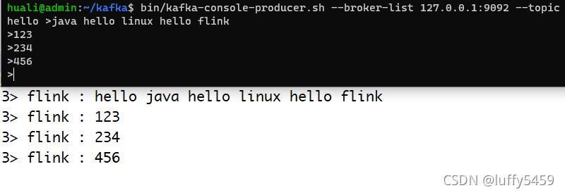因为flink是生产者,这里要看结果,我们需要启动一个kafka的消费者终端,然后运行本示例: