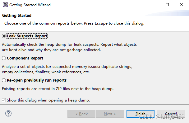 在eclipse中,可以直接File->Open,选择堆栈转储文件。这时候,会弹出一个确认框,点击Finish即可。