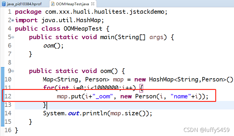 12行是往map中添加对象,这里不断申请新的对象,内存不够,最后报错。