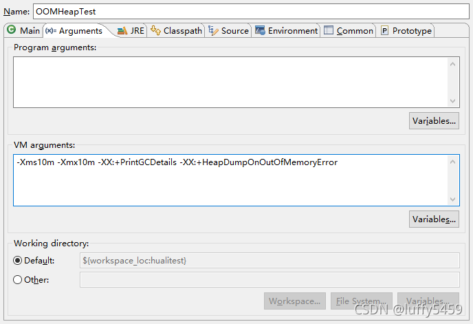 -Xms10m -Xmx10m -XX:+PrintGCDetails -XX:+HeapDumpOnOutOfMemoryError