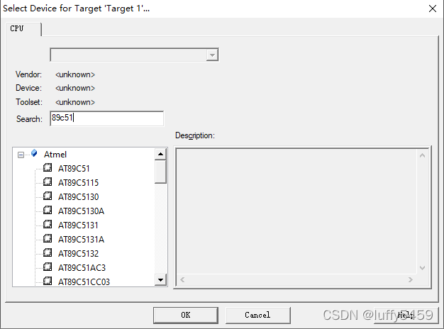 破解完成,就可以打开keil使用了,新建工程(菜单栏 Project->New uVision Project),一般会先选择一个存放位置,最后会出来一个单片机类型选择向导,如果keil安装的不对,这一步可能都不会出来单片机类型选择。