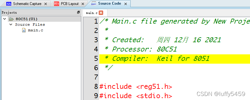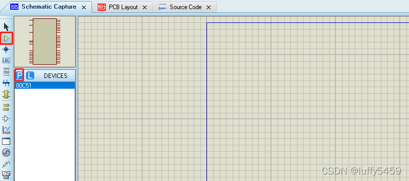 接着可以切换视图到Schematic Capture,新手千万不要切换到了PCB Layout视图,否则会很奔溃。这里直接就有一个80C51的芯片,不用我们去设备库里面选择了。