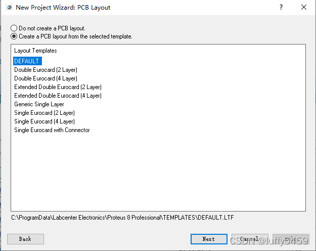 这一步是选择PCB布局的,也是从模板创建,依旧选择默认DEFAULT类型。