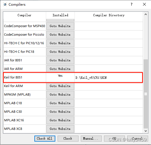 这一步,如果没有Keil for 8051编译器,可以点击后面的Compilers按钮 ,配置系统安装的Keil编译器: