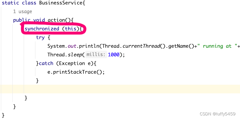 它也可以用在代码块中,这时候它可以修饰一个类对象.class,一个全局对象lock,或者this。