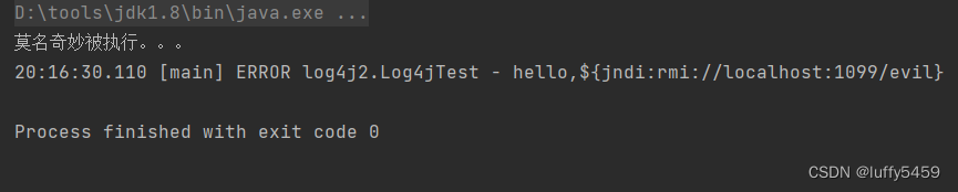 这个程序,开启一个rmi服务,绑定了Hallo类,对外暴露的远程服务是:jndi:rmi://localhost:1099/evil。当远程客户端调用这个服务,Hallo类就被初始化,并执行static代码块中的打印功能。