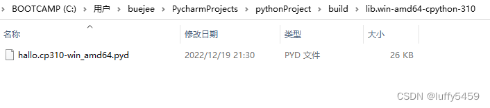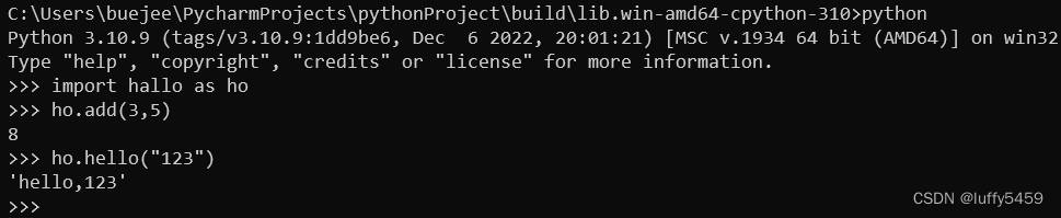 这个文件虽然名字叫hallo.cp310-win_amd64.pyd,但是你可以像hallo.py文件一样调用。
