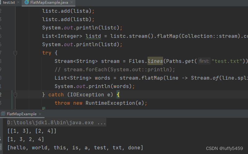 flatMap里面需要传入一个Function参数,这里根据需要将数组转为stream。其实可以直接传入一个函数名:Collection::stream,效果是一样的。