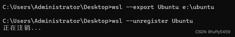 导出之后注销原来的分发 wsl --unregister Ubuntu