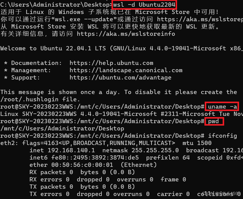 这里全部使用wsl命令完成,也没有涉及改变wsl version 为2。