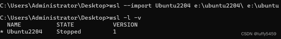 5、导入 wsl --import Ubuntu2204 e:\ubuntu2204\ e:\ubuntu