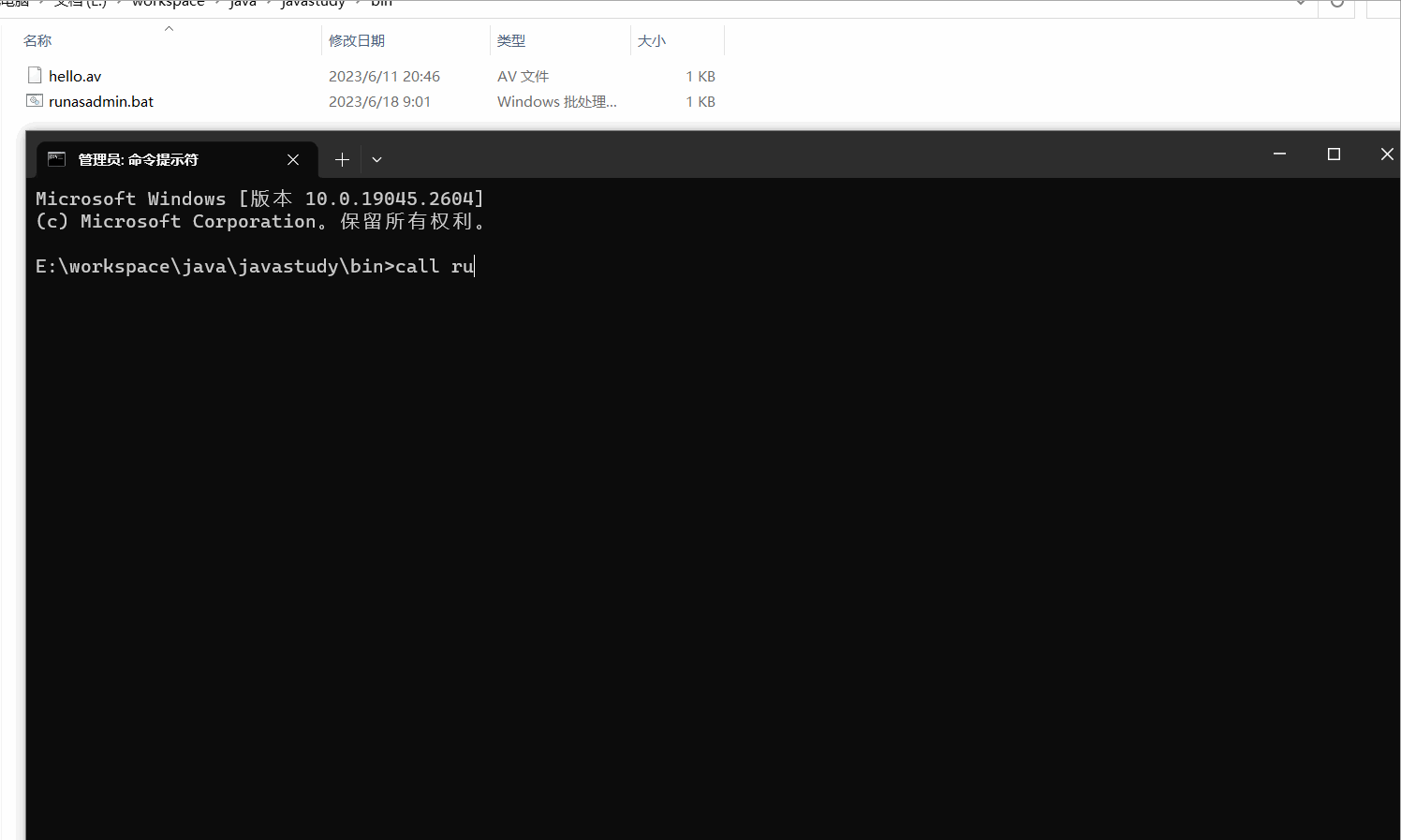我们在命令行下执行call调用,运行之后,当前命令行直接关闭,之后生成了adminpermission.txt文本文件,内容符合预期。