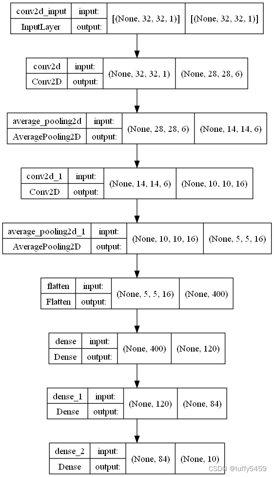 所以在实现中,卷积层的激活函数一般使用tanh,但是使用relu也没有问题,同理,下采样层SubSampling这里采用MaxPool2D,AveragePooling2D都行。